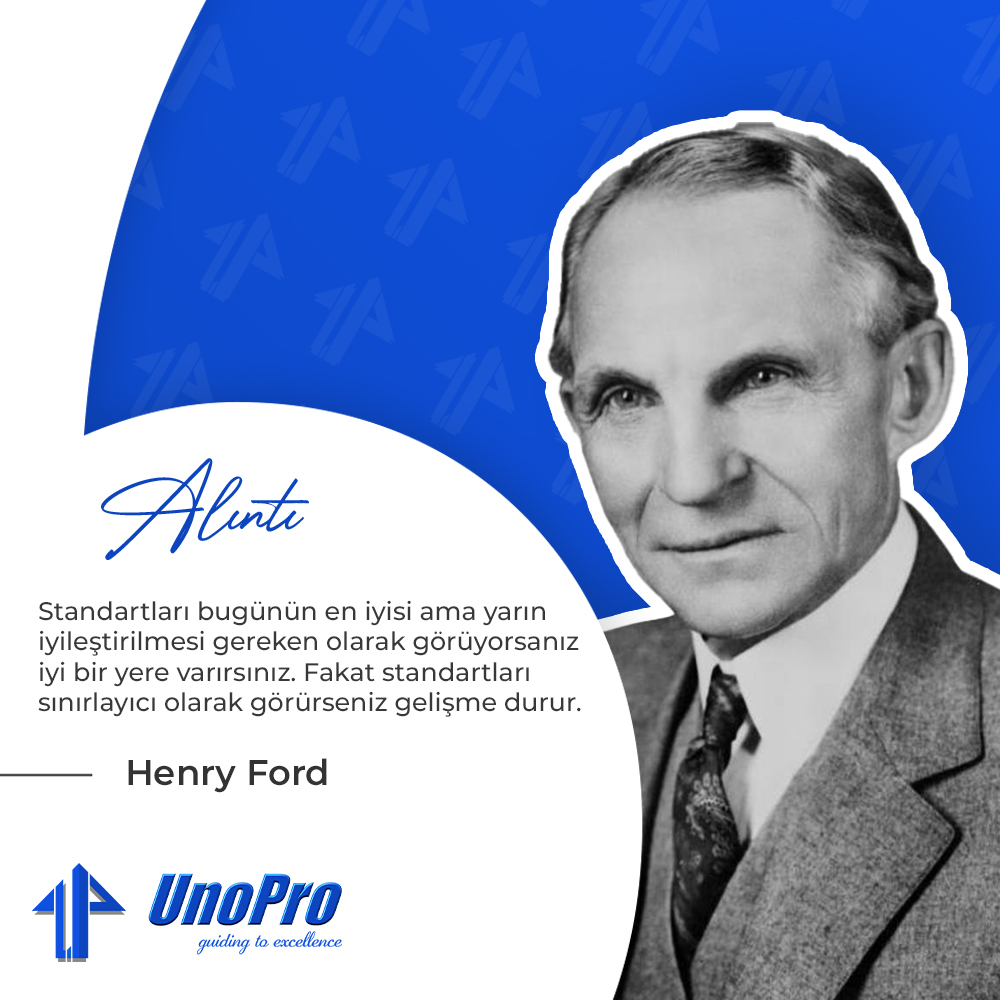 Bugünün standardizasyonu yarının iyileştirmelerinin dayandırılması gereken temeldir. Standartları bugünün en iyisi ama yarın iyileştirilmesi gereken olarak görüyorsanız iyi bir yere varırsınız. Fakat standartları sınırlayıcı olarak görürseniz gelişme durur.